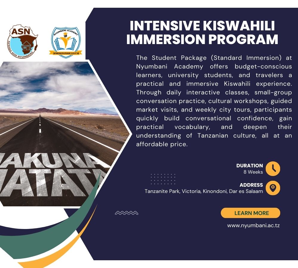 The Student Package (Standard Immersion) at Nyumbani Academy is designed for budget-conscious learners, university students, volunteers, and travelers who want to gain practical Kiswahili skills while experiencing Tanzanian culture first-hand. This program combines structured language instruction with interactive and cultural activities to provide a well-rounded, immersive learning experience.